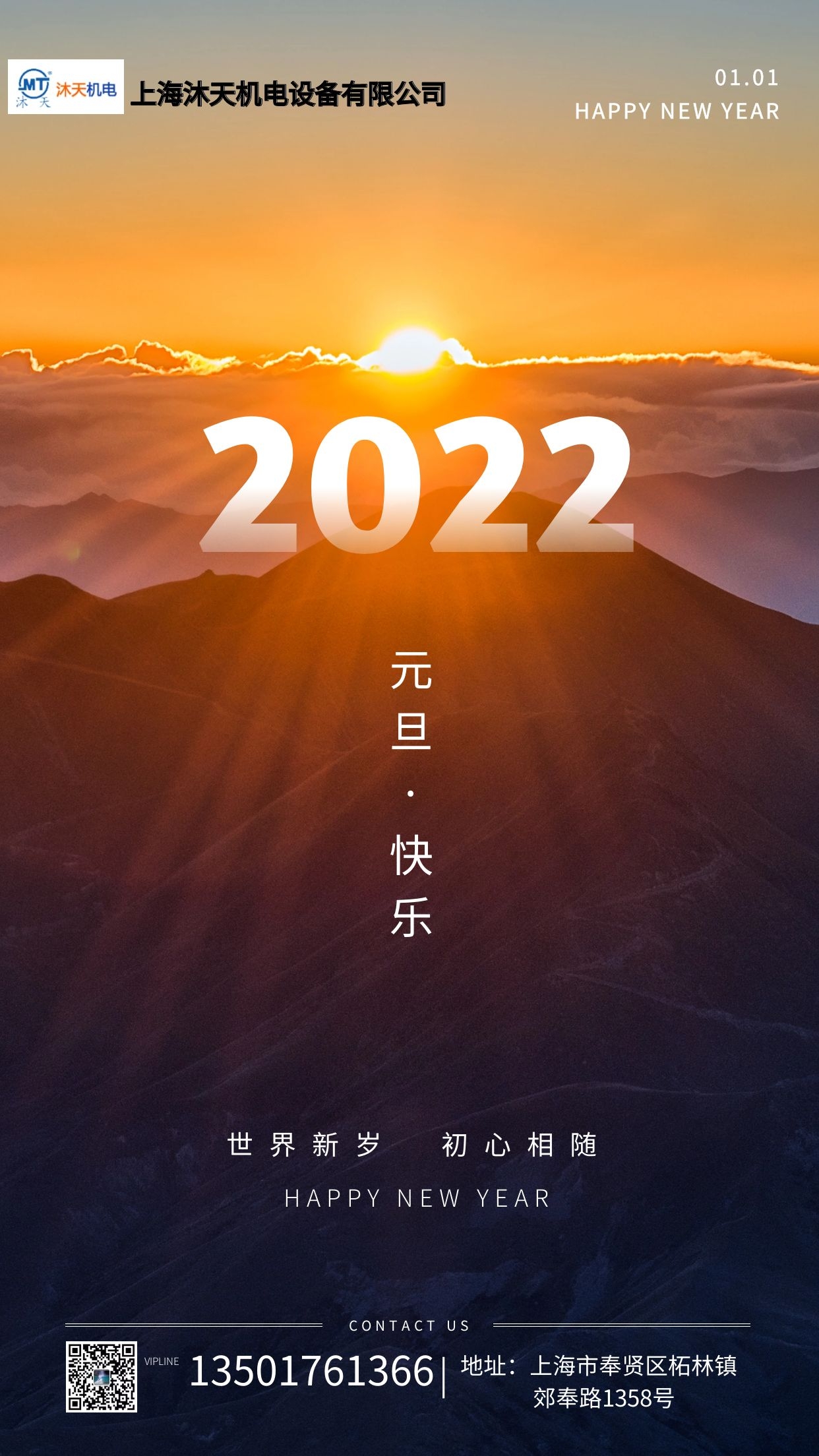 上海沐天机电设备有限公司在此恭祝大家2022年元旦快乐!